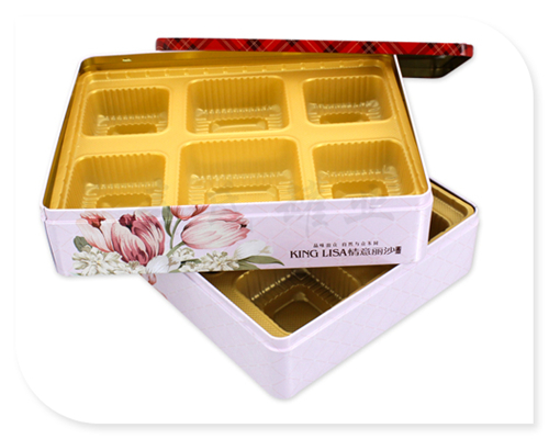 此款七星伴月月餅鐵盒子,外觀效果效果上,有明顯的菱形浮雕工藝處理,炫耀奪目的擊凸效果,讓人眼前一亮的感覺,為下次的購買行為作鋪墊。鐵盒印刷為單面四色印刷工藝,外過啞光油,在原有的光澤度上再次提升,配合浮雕的不同效果,使得此款月餅鐵盒外觀的反光效果得到進一步提高。鐵盒基材為國產0.23mm鍍錫馬口鐵精心打造而成,300*230*70的尺寸,可包裝七個或八個美味可口的月餅產品。鐵盒可為您配套各種PET、PVC等材質的食品內托,多樣化、個性化的包裝您的月餅產品。