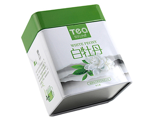 此款方形白牡丹茶葉鐵罐的尺寸為105*75*123mm,為了順應(yīng)多樣化的市場(chǎng)包裝需求,這款茶葉馬口鐵罐可做成心形、正方形、橢圓形、車形、書本形等異形造型。