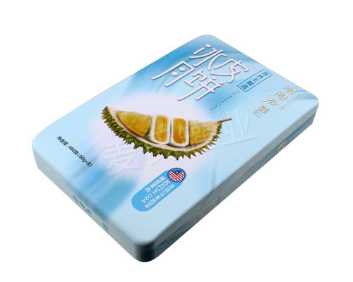 此款冰皮月餅包裝盒,外形為長方形,內卷線蓋,身縮口,扣底設計,鐵盒尺寸為:300*160*55mm,能為您包裝六個裝、八個裝的冰皮月餅產品,這是目前冰皮月餅包裝禮盒的。鐵盒表面為透鐵處理,鐵料原有的原理能清晰的表現出來,涂布具有高亮效果的光油,更能產生一種冰雪的效果,可直接體現出冰皮月餅的特點屬性。