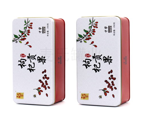 枸杞芽茶鐵盒,寧夏枸杞葉茶馬口鐵盒,采用單面1專色+四色印刷工藝制作,外過水性亮光油,內(nèi)過金油油,鐵盒整體為蓋、身、底印刷處理。此款鐵盒為200*90*83mm的規(guī)格尺寸,可包裝720g的枸杞芽茶,可選擇大容量的包裝需求。