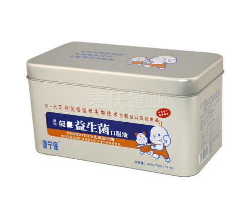 這款口服液鐵盒,采用進口0..25mm厚度的鍍錫馬口鐵盒精心打造而成,鐵盒為四色專版印刷,蓋子為外卷線天地蓋,內外過上水性透明光油,鐵盒質地高亮鮮明。而的鍍錫馬口鐵,能防止醫藥保健產品受潮融化或受力壓碎等不良現象的發生。