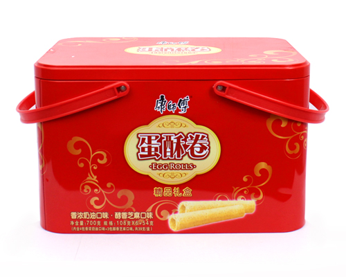 麥氏罐業生產手提年貨鐵盒禮品盒產品,是國內的鐵盒廠家,產品已遠銷國內外二十多個國家與地區。三層食品鐵盒包裝定制熱線:186-7632-2818。