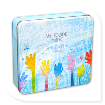 此款水密碼護手霜鐵盒為麥氏罐業為丹姿集團水密碼品牌精心打造的精美化妝品鐵盒,其鐵盒版面設計為丹姿集團所提供,清新創意的風格設計,鐵盒的材質為馬口鐵制成,雙面1專色+四色印刷工藝制作,同時內托配套PVC材質的吸塑內托,方便水霜產品包裝外,還提升鐵盒整體使用性能。