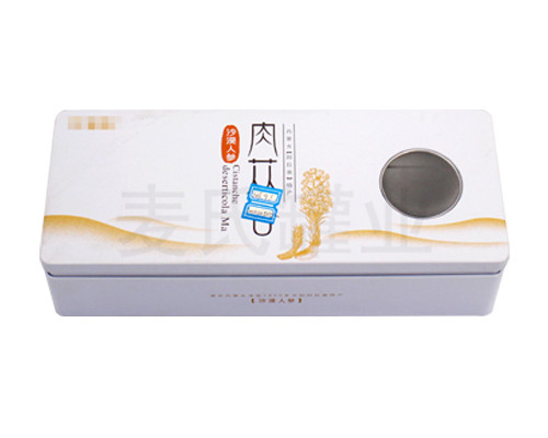 此款創意開天窗金鎖陽金屬包裝禮品盒在嚴格生產的同時,我們還為您提供一對一鐵盒包裝服務與鐵盒配套服務,有人員跟進您的肉蓯蓉包裝鐵盒產品生產進度,保證25天內完成您的鐵盒包裝任務;可為您定制手提袋、真空袋、內托等鐵盒配件服務,實現高有效率的制罐生產流程,按時按量按質的打造保健品包裝產品。
