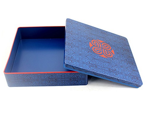 這款正方形藍色6個裝月餅鐵盒采用0.23mm鍍錫馬口鐵制作,客戶可根據自身需求,選擇0.23-0.28mm的馬口鐵/磨砂鐵制作,若選擇磨砂鐵制作鐵盒可使得材質表面有強烈的沙礫效果,在觸感上會變得更加有感覺。